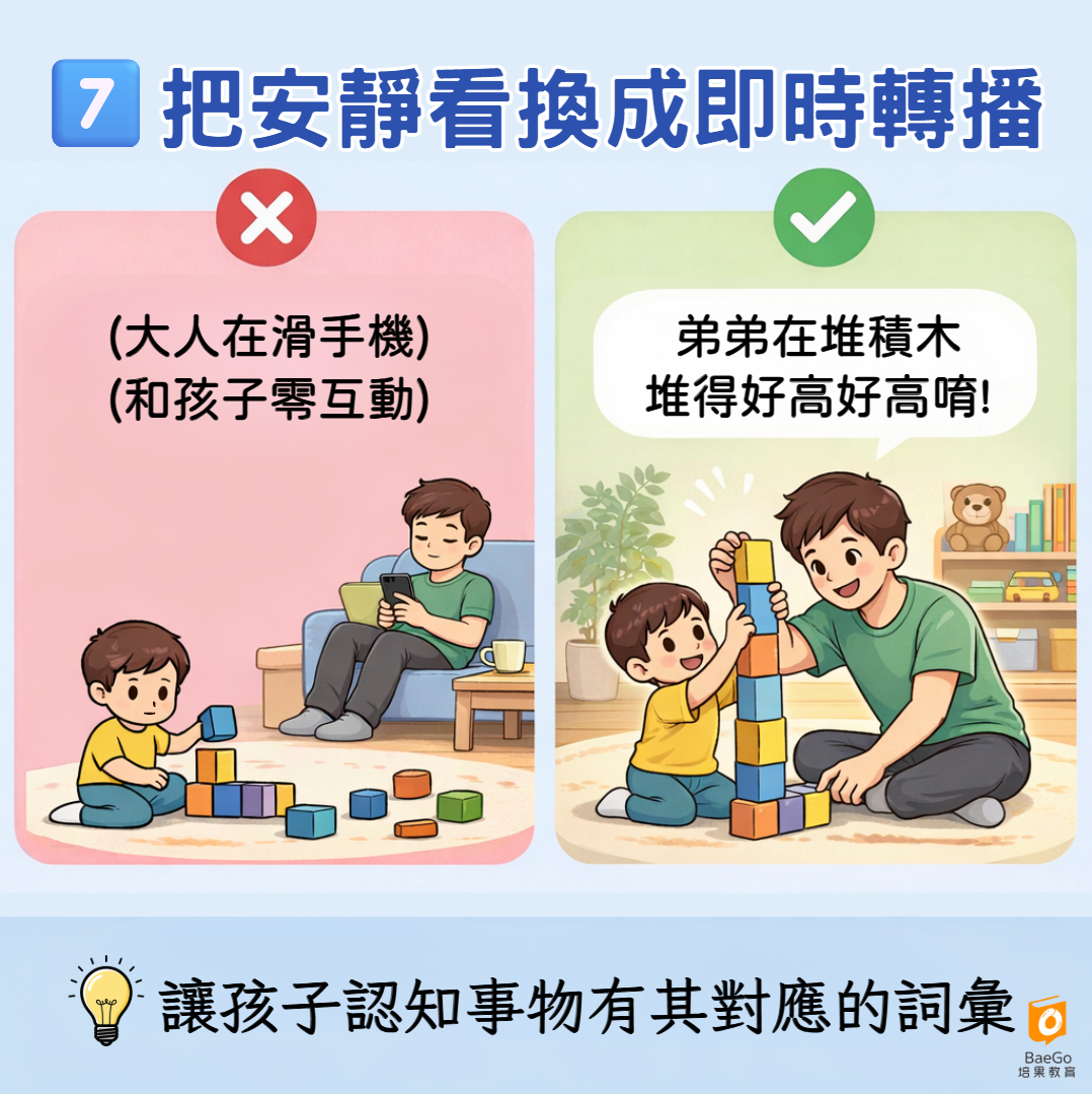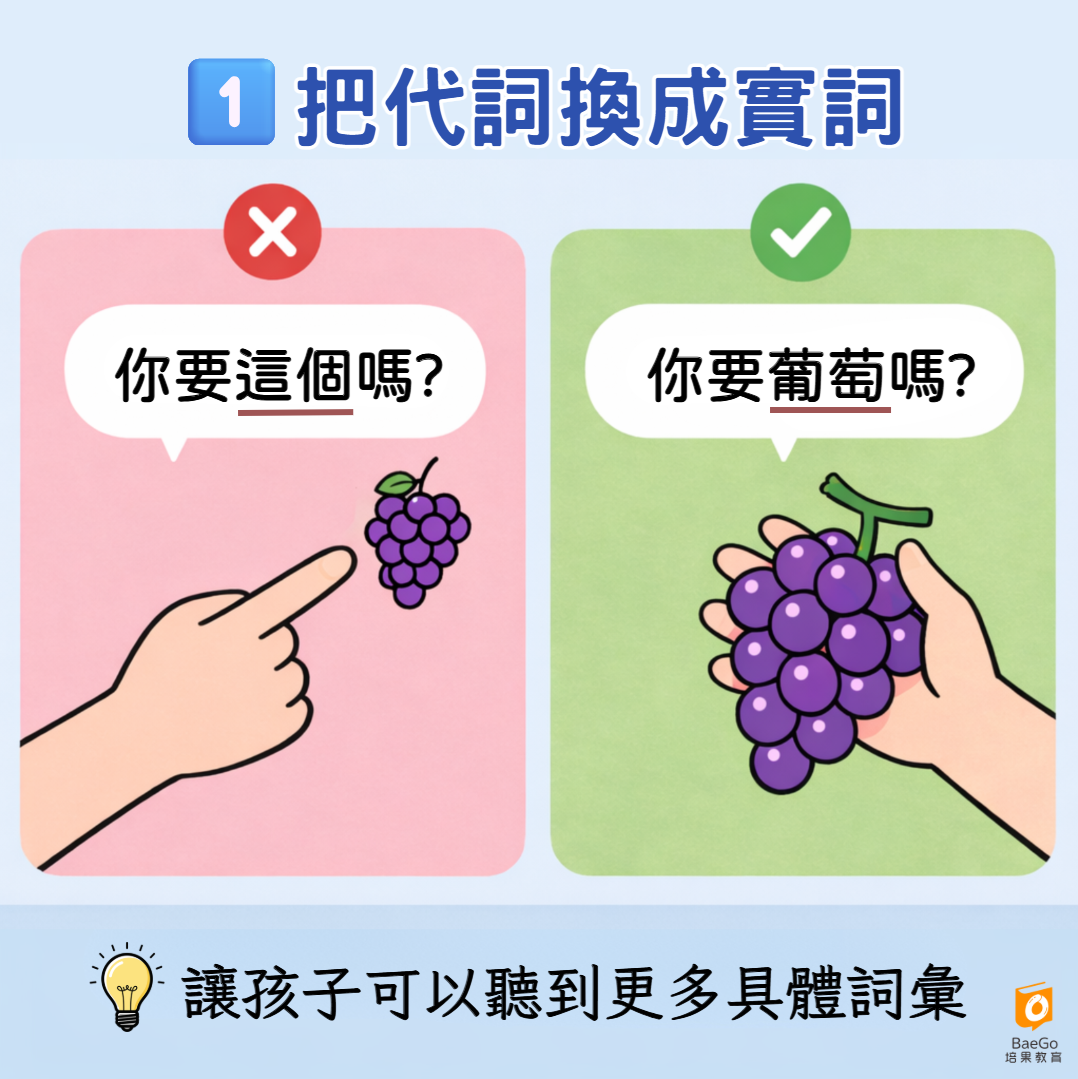 這種清楚、實際的語言刺激,能幫助孩子更快建立完整的詞彙庫。