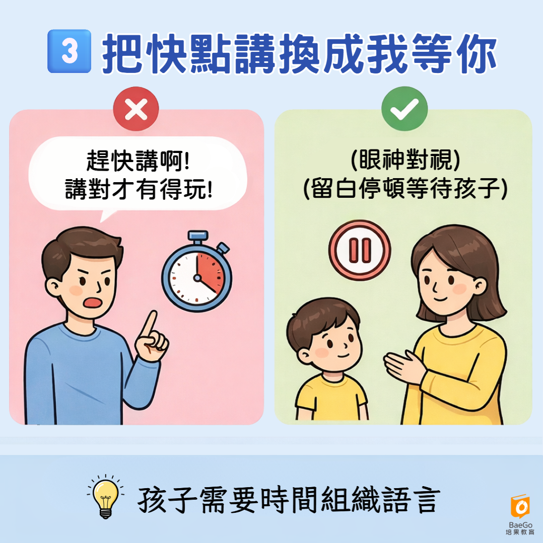 3️⃣ 把「快點講」換成「我等你」