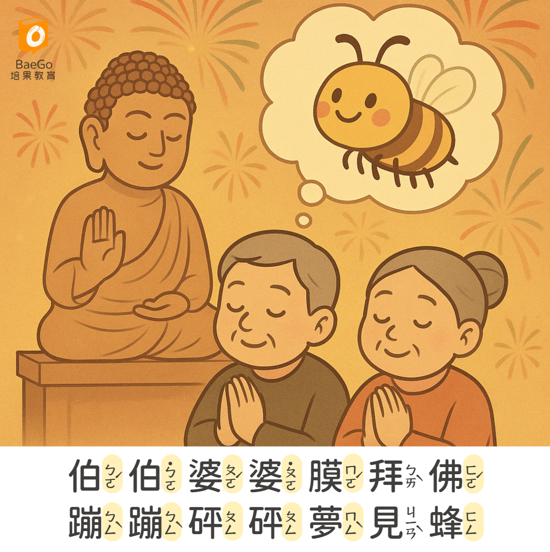 伯伯婆婆膜拜佛,蹦蹦砰砰夢見蜂。
