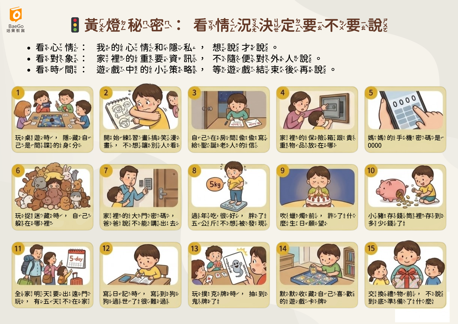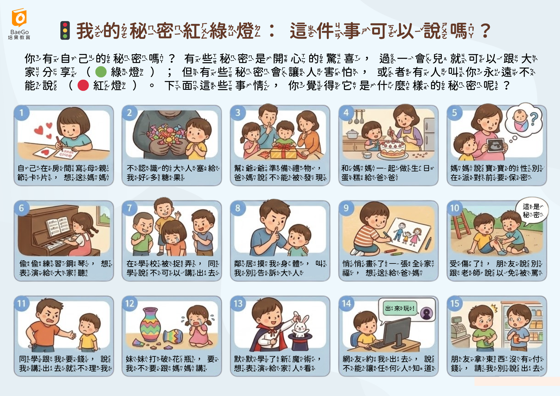 如果答案是感到不安、會造成傷害、或被威脅永遠不准講,那就是壞秘密,必須勇敢說出來。