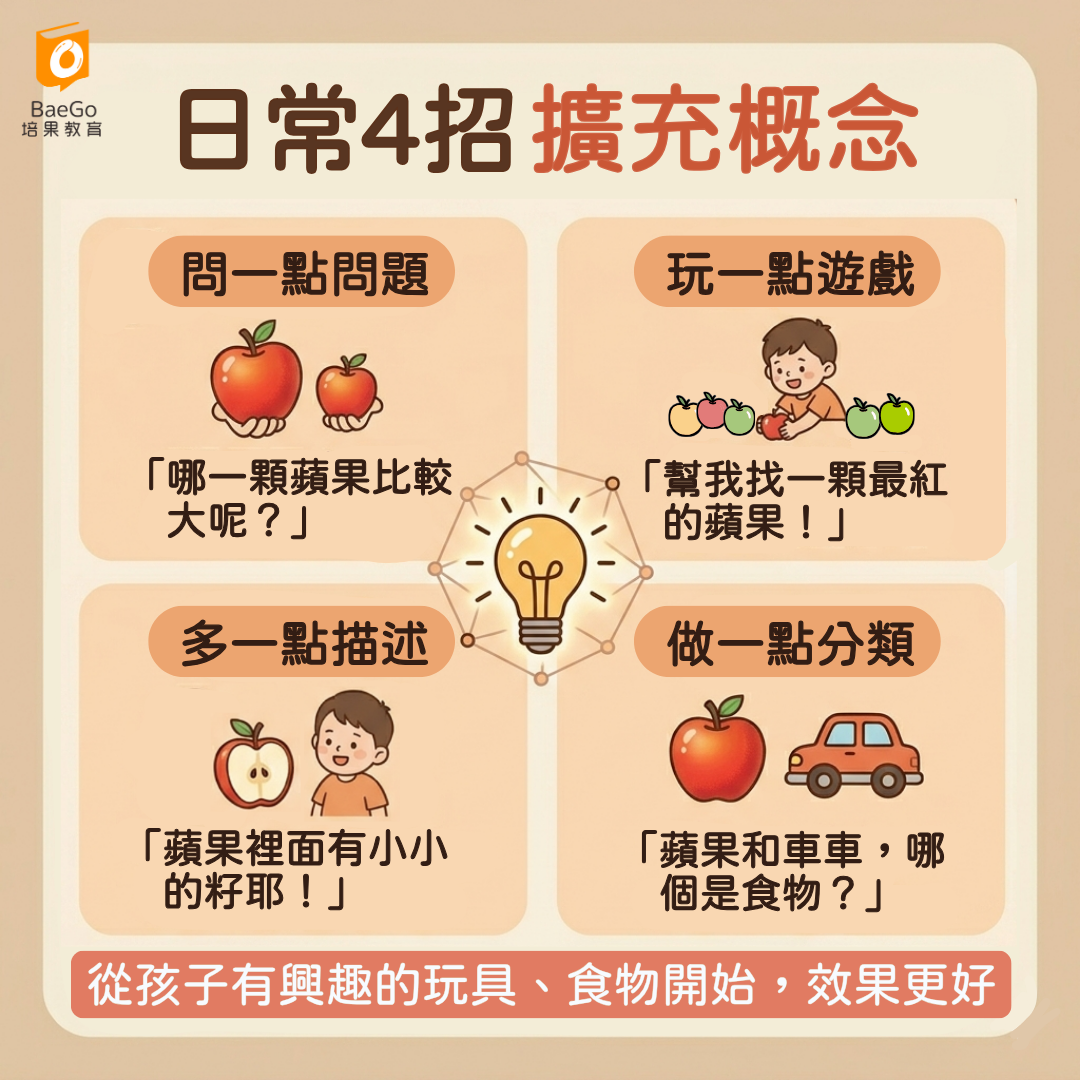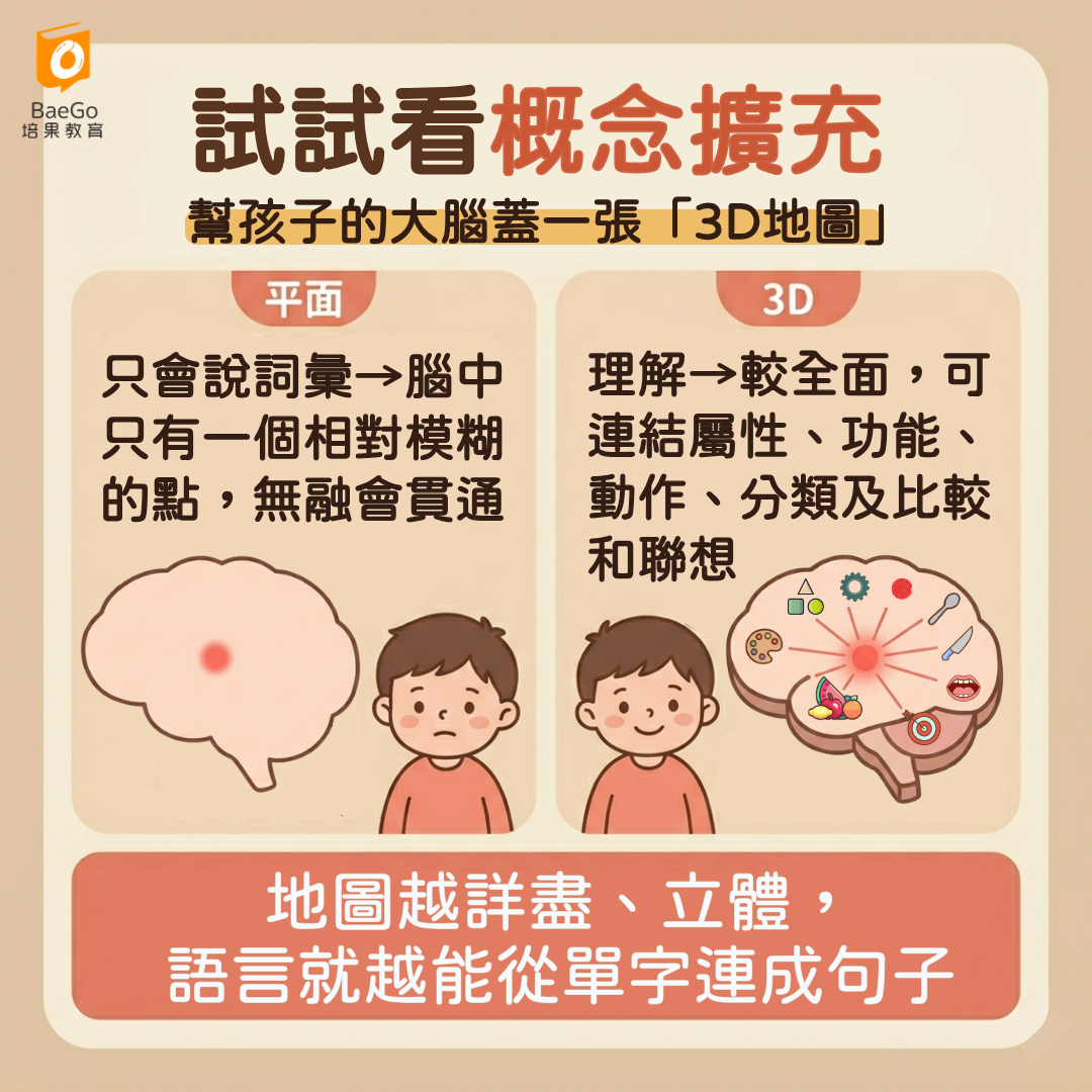 與其一直教新單字,更重要的是幫孩子做「概念擴充」。