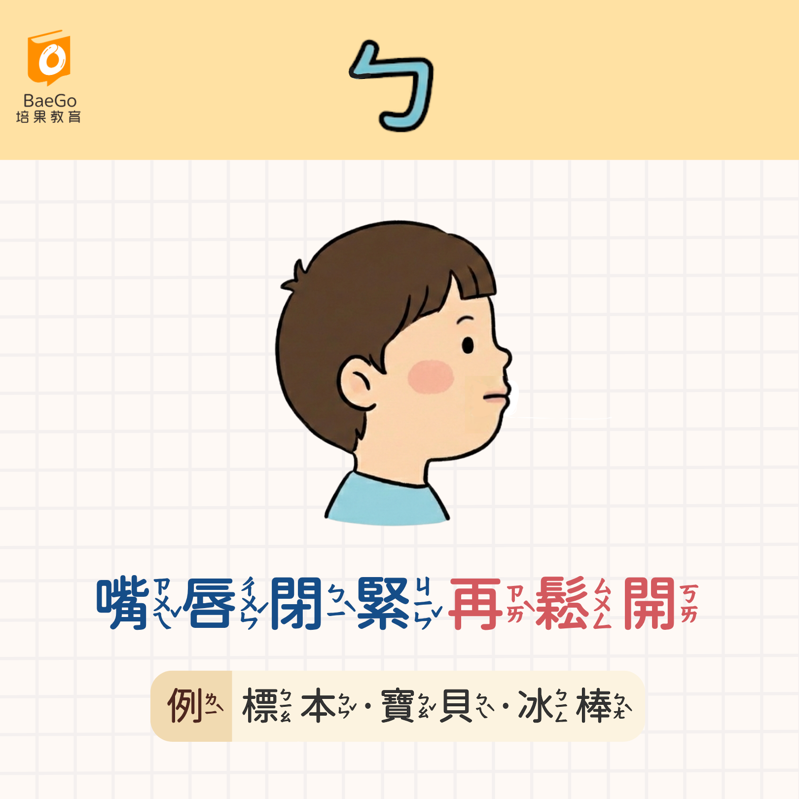 ㄅ:標本、寶貝、冰棒