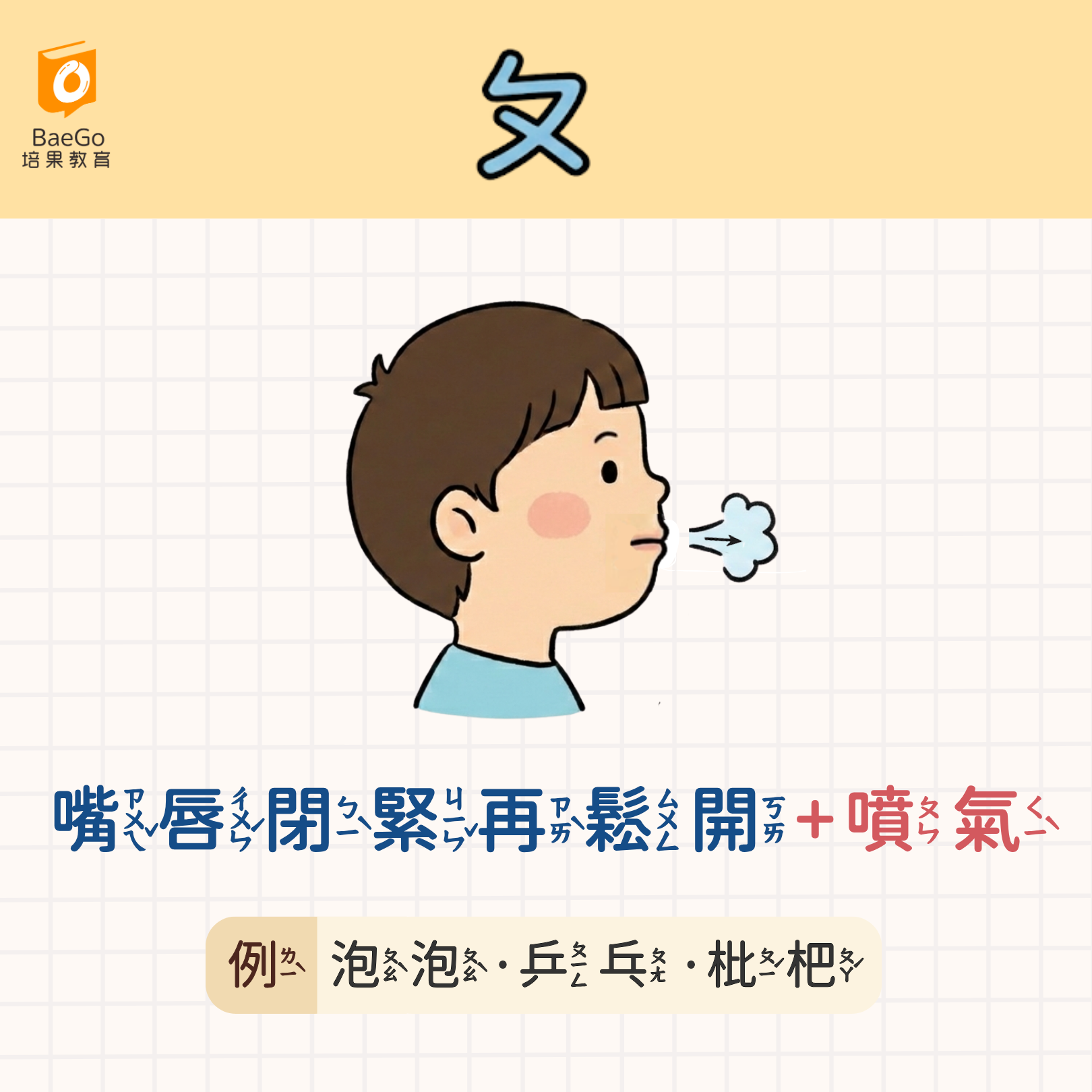ㄆ:泡泡、乒乓、枇杷
