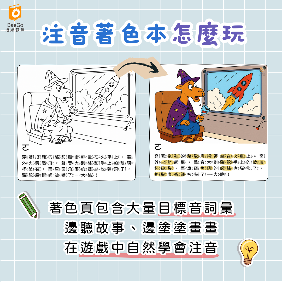 如果可以邊畫邊學注音、邊聽故事邊累積詞彙,那學注音就不再需要催、也不會被拒絕了!